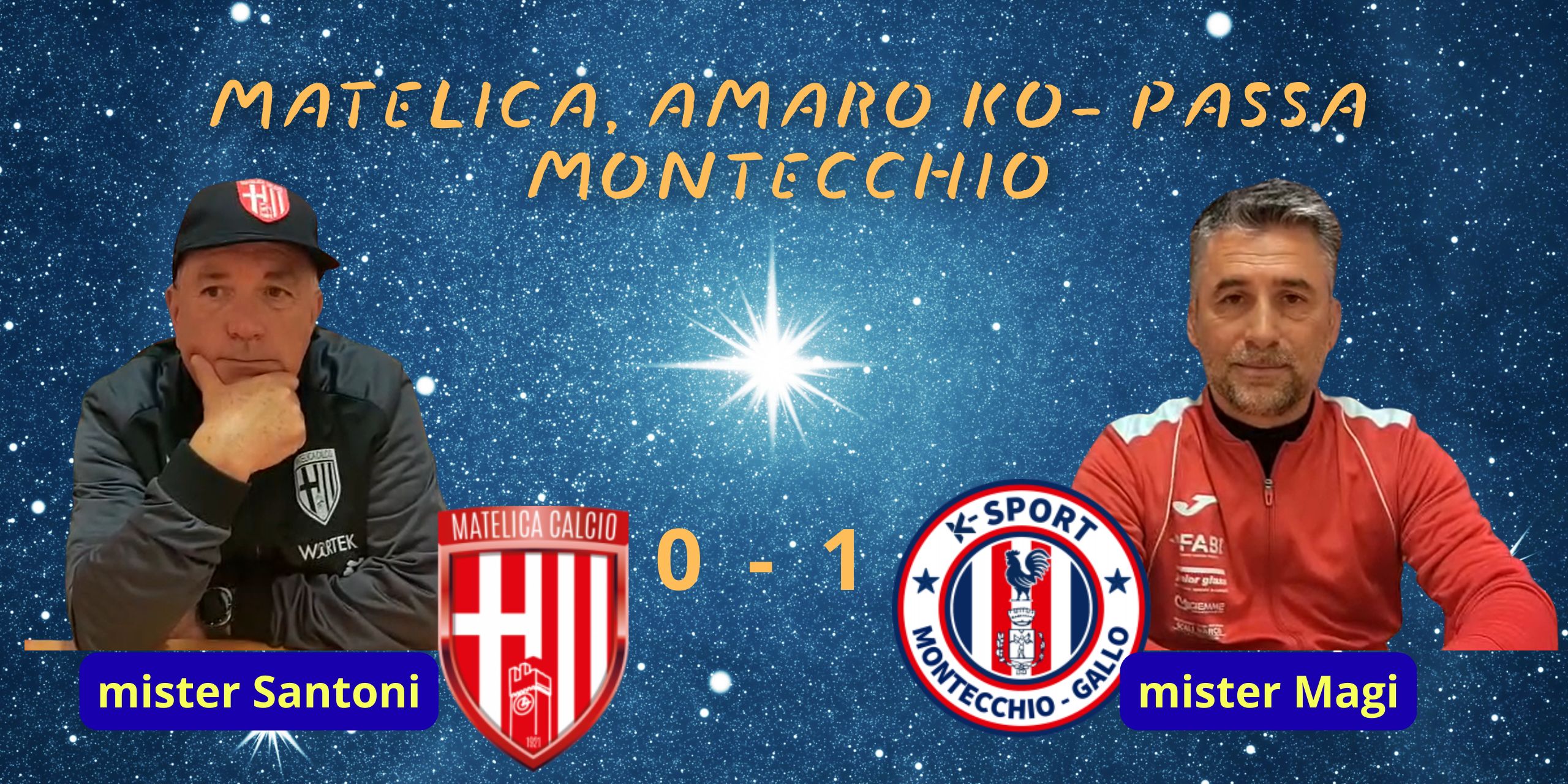 MATELICA: Ginestra, Montella, Merli(Bonvin 90’), Bucari , Bianchi L., Lapi, Mengani E.(Pedrini 73’), Tomas Calier, Touray(Tittarelli 86’), D’Errico(Sfasciabasti 86’), Bianchi D. All: Santoni
